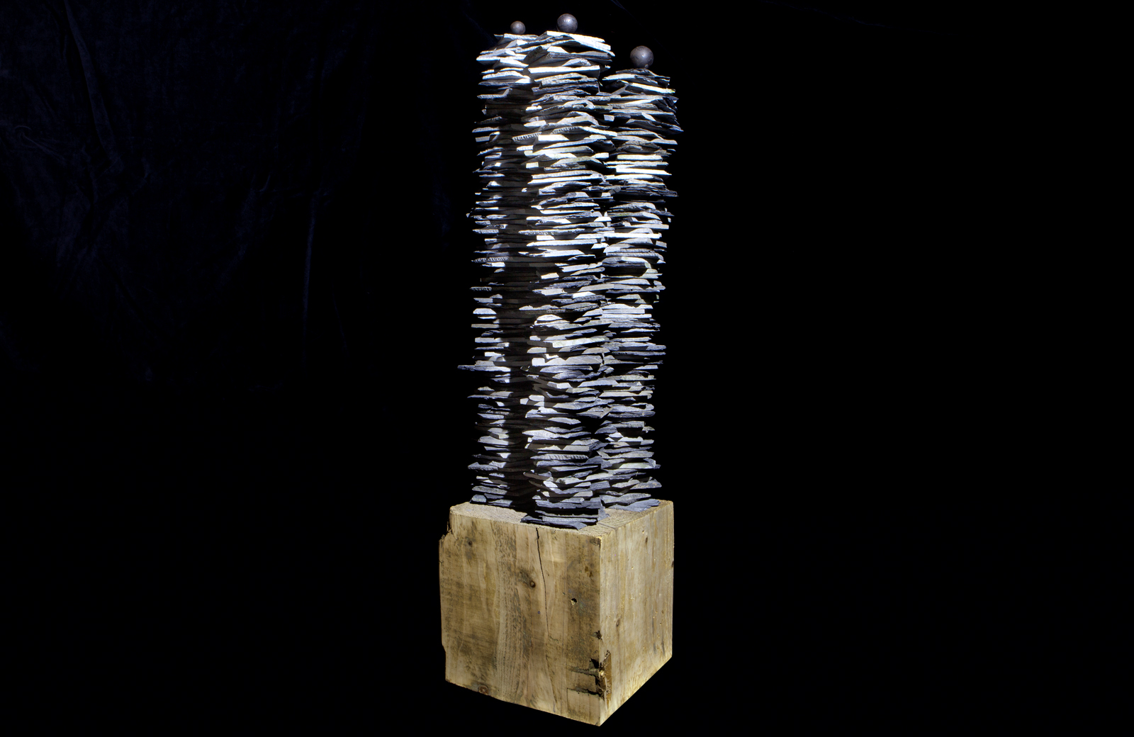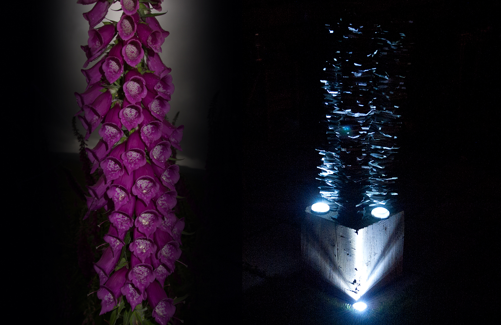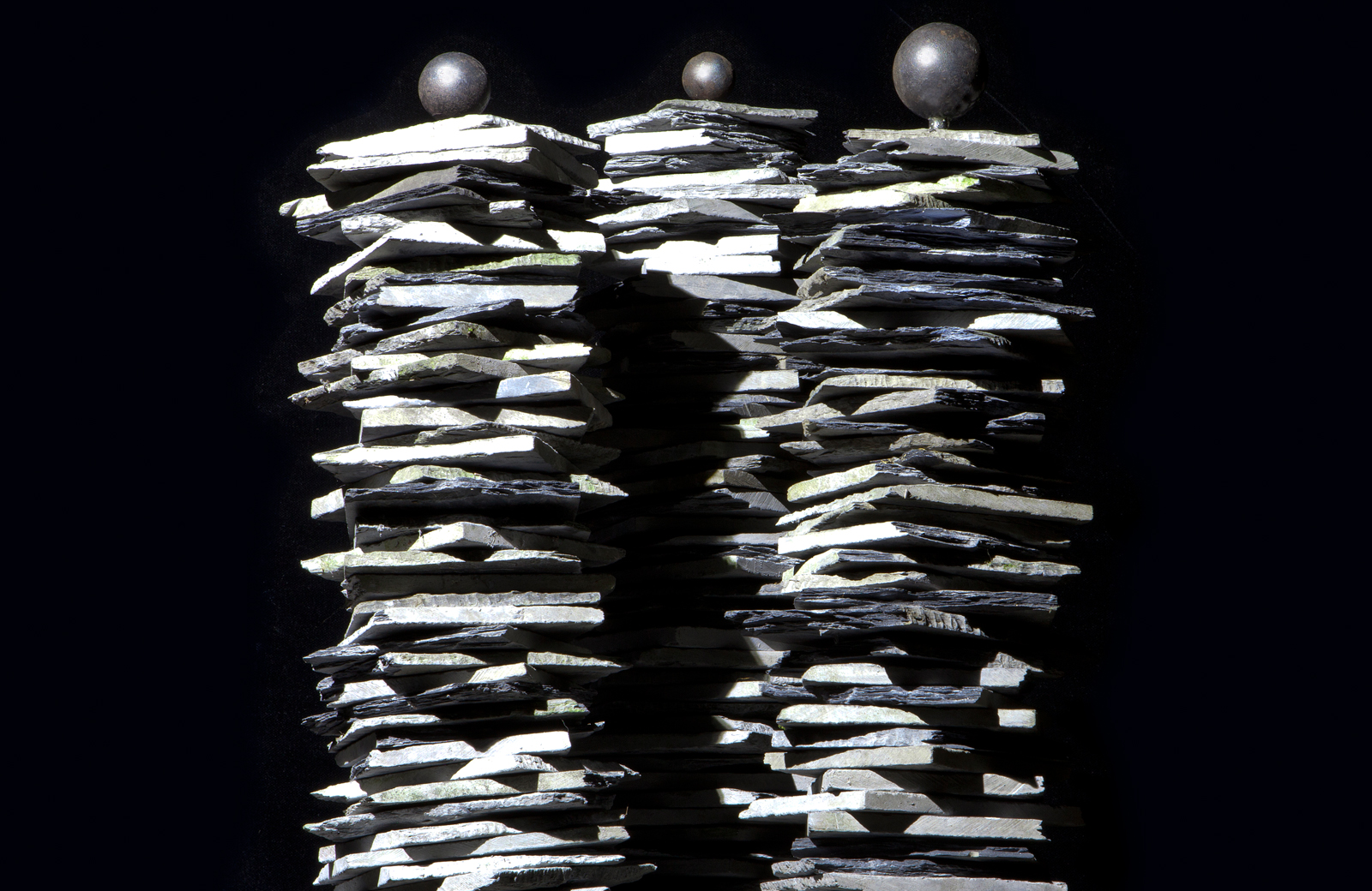 The sculpture represents the idea that life can be disrupted or radically altered by influences outwith the control of the individual. In Sandra’s case (and like many others battling life-threatening illness) it was an internal influence that changed everything. The layers of slate columns (or flowers) represent the many battling illness, moving in the wind, reflecting the energy and life that is within us all. I wish Sandra and all people who are battling life-threatening illness a speedy recovery – and a new life.